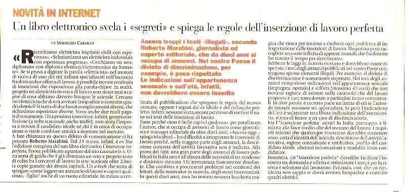 Sono alcune delle domande alle quali, attraverso un centinaio di pagine di facile comprensione, il giornalista Roberto Marabini, direttore ed editore di Lavoratorio.it, tenta di dare una risposta ripercorrendo i suoi trent’anni di esperienza nel settore.